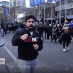 In September 2021 police ‘kettled’ protestors in the city and pushed them towards the Shrine of Remembrance, an iconic war memorial in Melbourne. There police in all black riot gear shot unarmed people, some singing the national anthem, with rubber and pepper bullets.